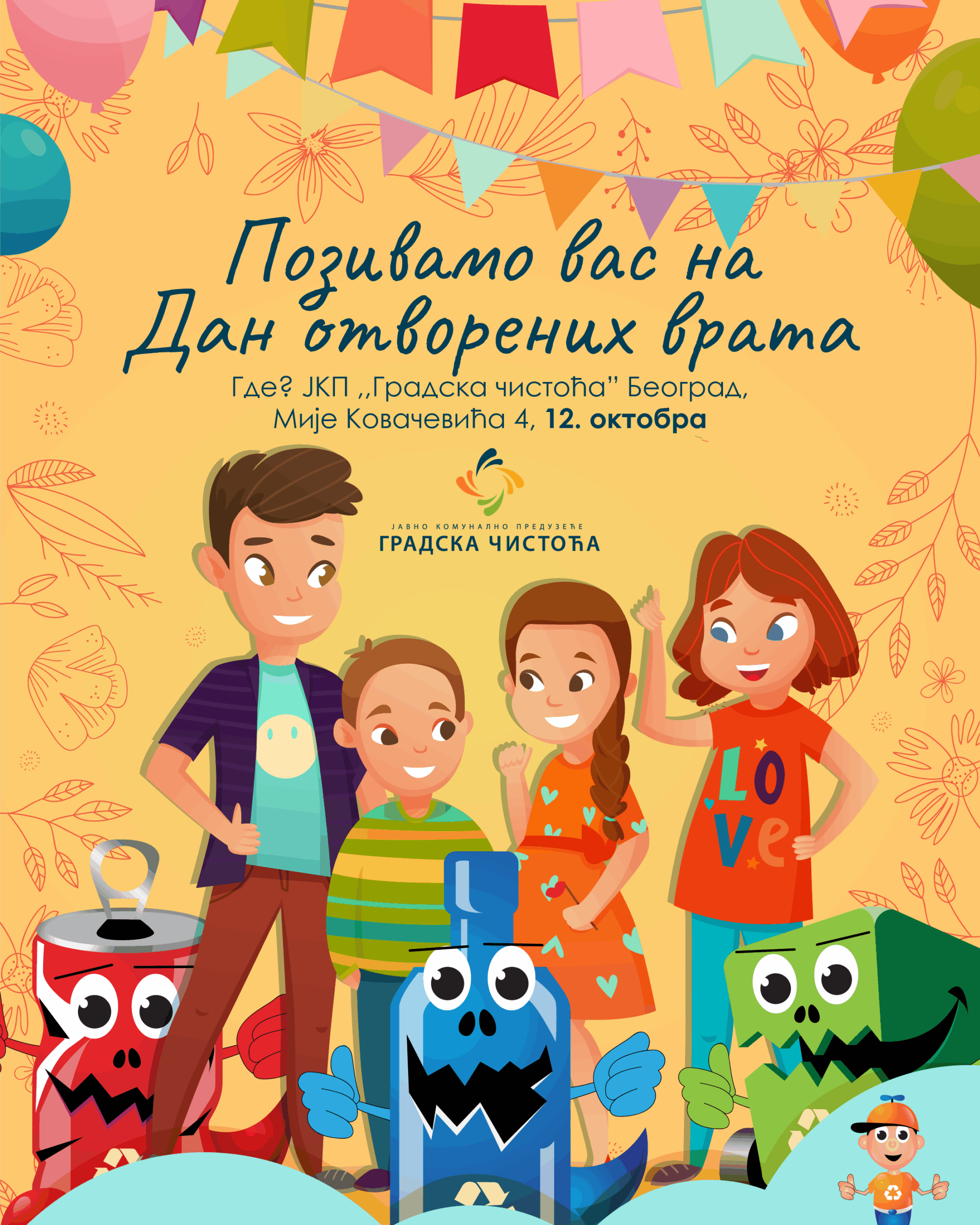 Током традиционалне акције „Дан отворених врата“ малишани ће у пратњи својих родитеља, старатеља, бака и дека, васпитача и наставника моћи да искористе јединствену прилику да поред вожње у омиљеним смећарцима виде и како изгледа вожња у специјализованим возилима, за воду и земљу, популарним Амфибијама, како се користе електро-чистилице, електро-тротинети, дувачи за лишће, електро-усисивачи, као и да учествују у едукативним радионицама о рециклажи, а све то у обезбеђеном кругу предузећа.