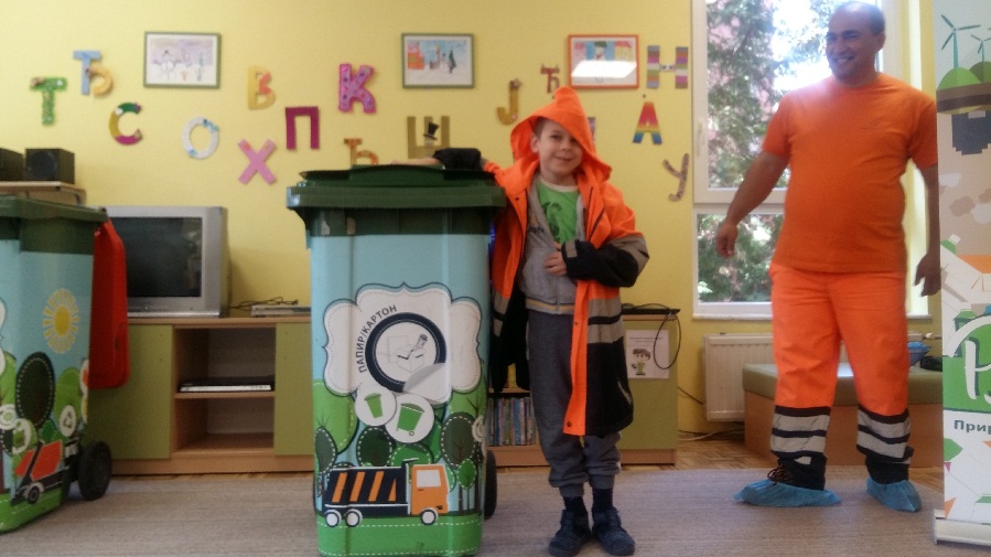 Извршни директор за послове рециклаже ЈКП „Градска чистоћа“ Михаило Досковић, и директор сектора рециклажа Милован Драшкић су у име предузећа донирали вртићу плаве ПВЦ канте од 240 литара за рециклажу.
